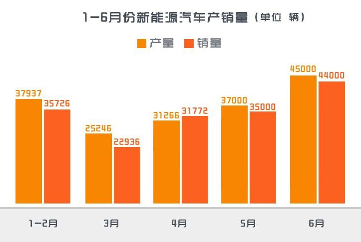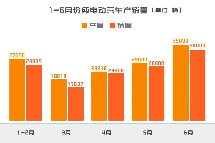 今年6月,中國新能源汽車產銷量為4.5萬輛和4.4萬輛,同比增長為107.4%和107.3%。其中插電式混合產銷量均為1萬輛,同比增長分別為61.3%和61.8%;純電動汽車產銷量分別為3.5萬輛和3.4萬輛,同比增長126.1%和126.6%。