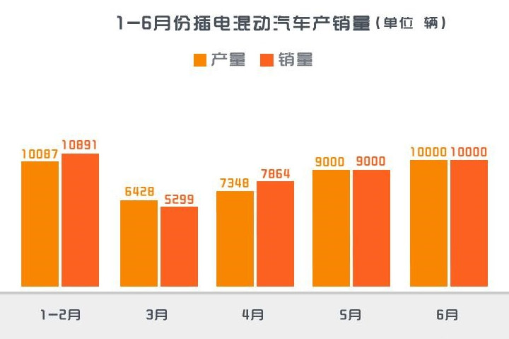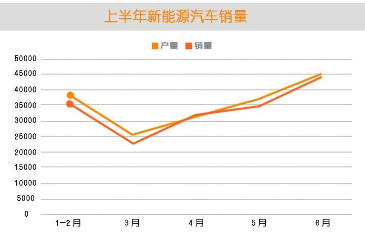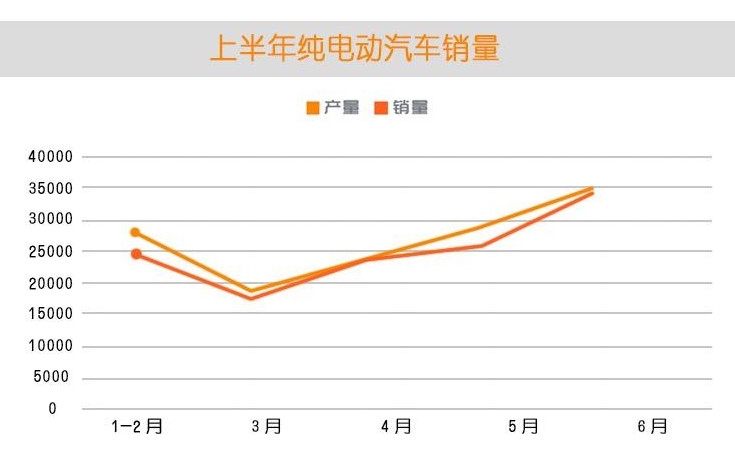 由圖可知純電動汽車的銷量在5月、6月明顯回升且有繼續增長的趨勢,而插電混動汽車雖有回升但增長不夠快,總體趨勢是增長的。