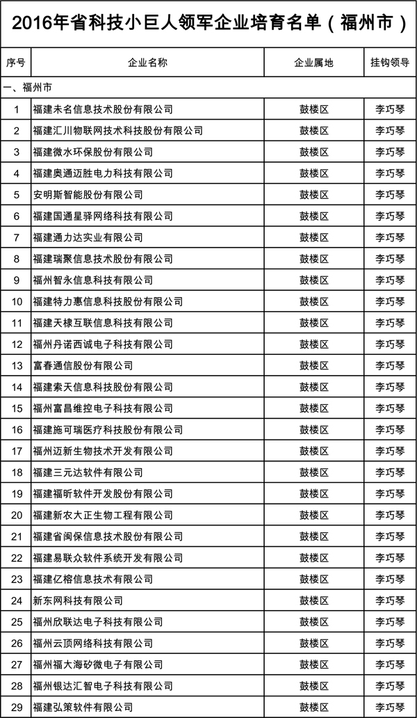 據悉,此次遴選科技小巨人領軍企業,旨在培育以新一代信息技術、新材料、高端裝備制造、節能環保、新能源、生物與新醫藥、海洋高新、現代農業等戰略新興產業領域的行業龍頭企業和創新型企業,引領福建省產業轉型升級。