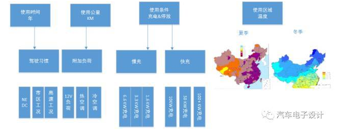 電動汽車電池系統方面的耐久性,換個說法就是耐久性方面的考慮。原則上,就是需要在考慮使用時間、使用公里數、使用條件和使用環境等條件下,輸入給電池系統一個等效的負荷環境。
