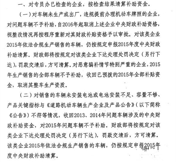 其實(shí),該份通知并非四部委對新能源汽車補(bǔ)貼清算再起波瀾,而是對2016年涉及“車輛閑置”問題的車輛進(jìn)行再次確認(rèn)。2016年9月,四部委向各省市工信部及發(fā)改委下發(fā)了《關(guān)于2015年度新能源汽車推廣應(yīng)用補(bǔ)助資金清算工作的補(bǔ)充通知》,文中表示, “近期,財(cái)政部駐各地財(cái)政監(jiān)察專員辦事處對2013-2015年新能源汽車推廣應(yīng)用補(bǔ)助資金管理使用情況進(jìn)行了專項(xiàng)檢查,并對以下四種情況進(jìn)行處理: