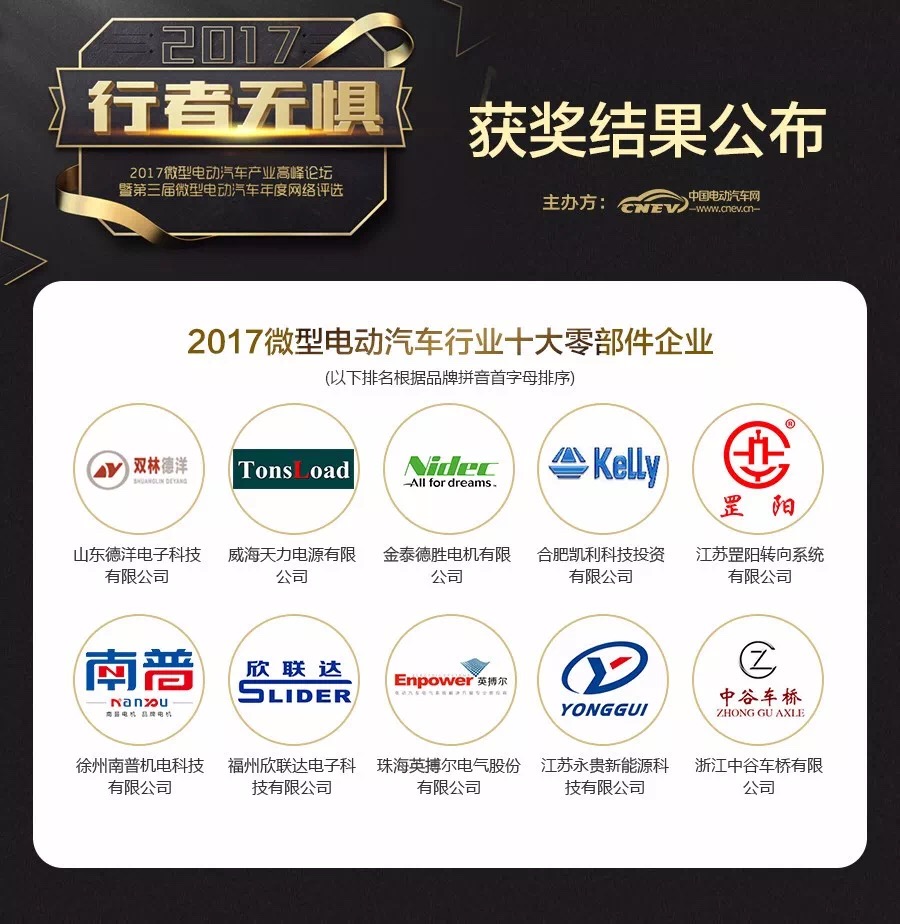 12月12日,備受關注的2017(第三屆)微型電動汽車年度網絡評選獲獎名單正式出爐。